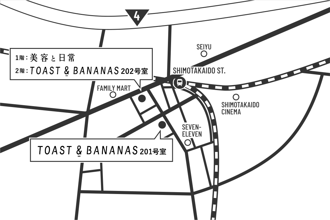 世田谷区の下高井戸駅から徒歩1分の立地にTOAST&BANANAS / 美容と日常 はあります。