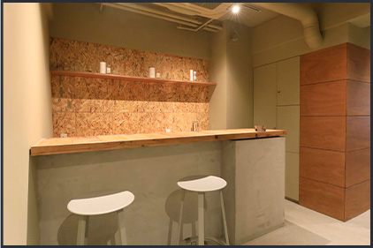 ビル2階の隠れ家のような入口のドアを開けると目を惹く大きなカフェカウンター。お客様からは「カフェみたい」と喜んでいただける、内装もこだわった店内。モチベーションを高めながら落ち着いた雰囲気で働くことができます。